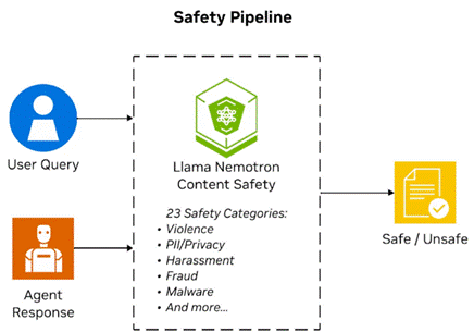 图 4. 使用 NVIDIA Llama Nemotron Safety Guard模型的安全管道,检测安全或不安全内容。